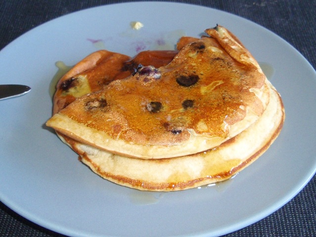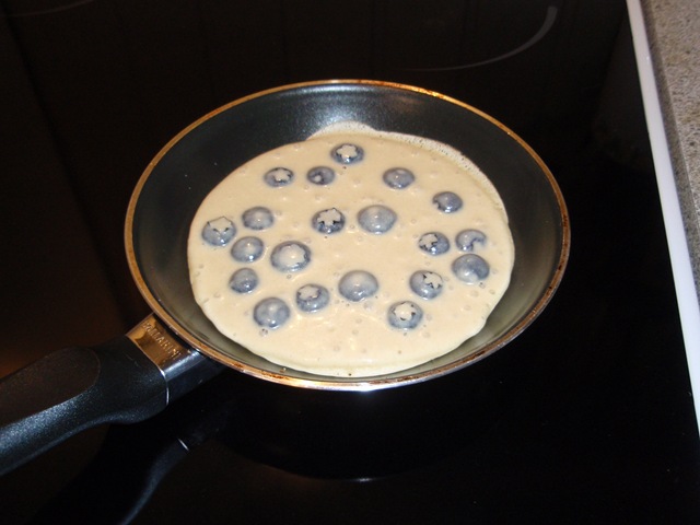 Hvis man nu gerne vil have blåbærpandekager (og de er altså bare super gode – og sprængfyldt med vitaminer og antioxidanter 😉 ), så skal man blot tilføje ca. 125 g. friske, skyllede blåbær (eller frosne, optøede) til dejen lige inden, den kommer på panden.